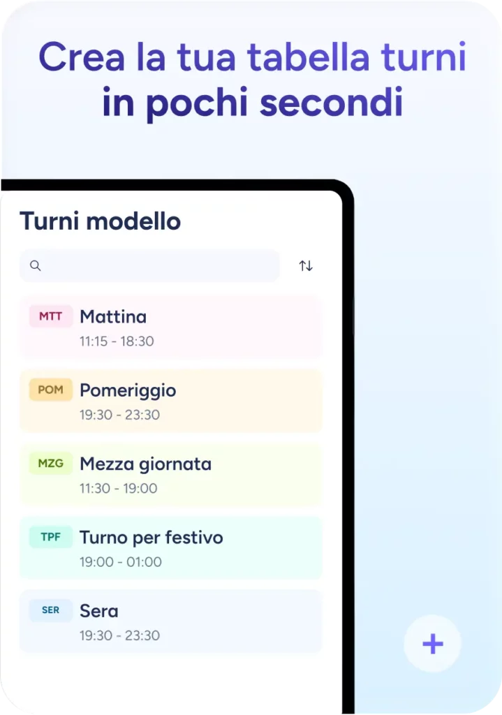 Il sistema perfetto per la gestione immediata di copertura del personale e infiniti turni da organizzare.