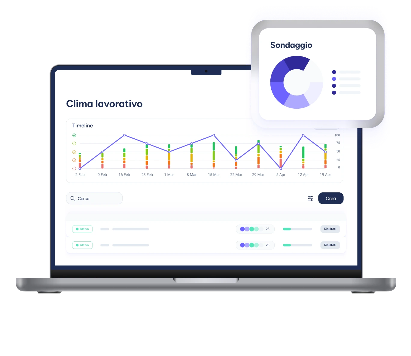 Scopri, misura e analizza il livello di soddisfazione dei tuoi dipendenti in azienda attraverso i sondaggi sul clima lavorativo. Ottieni un feedback diretto dal team e aumentate il suo impegno.