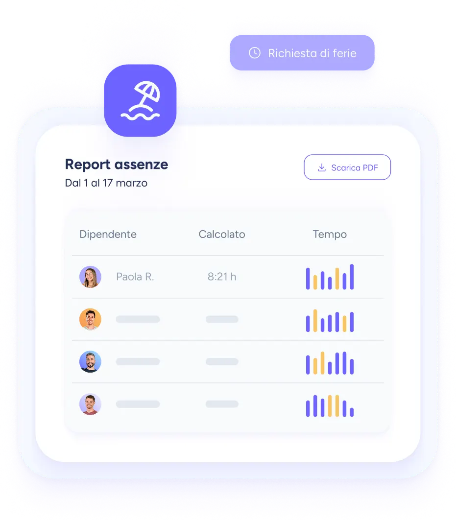 Accedi a report dettagliati sull'utilizzo delle ferie e dei permessi, che ti consentono di identificare modelli e tendenze e di adottare misure proattive per combattere l'assenteismo.